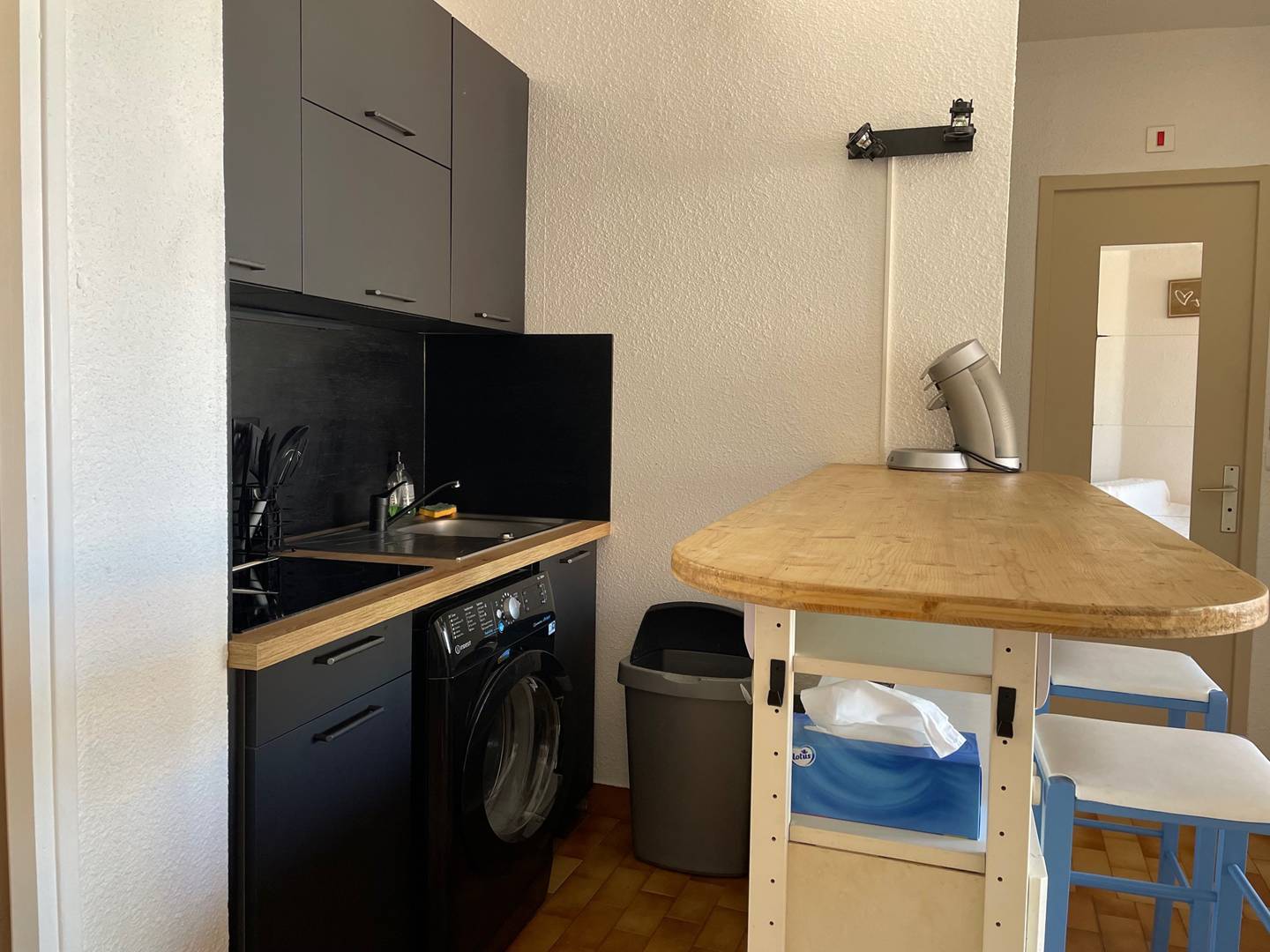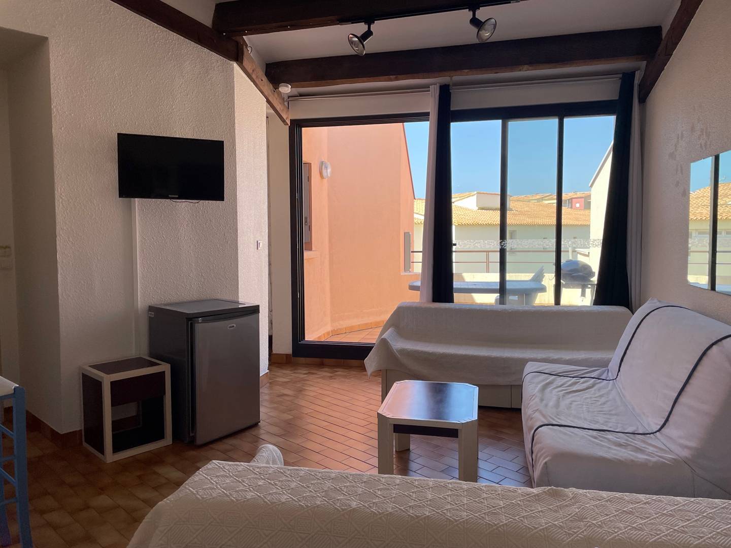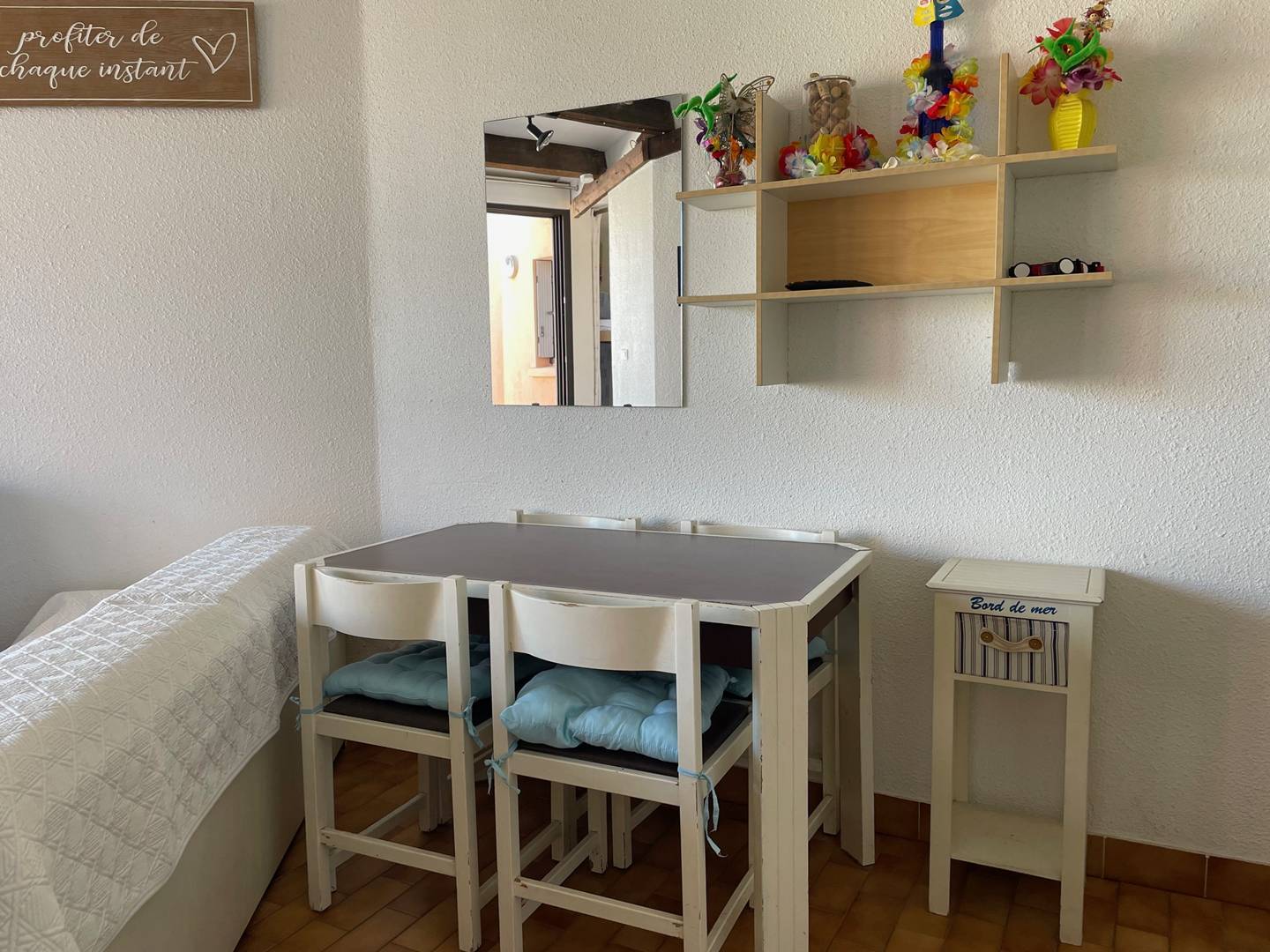 Résidence Ambassade du Soleil Bâtiment 7 appt 736 + parking libre sécurisé dans la résidence Résidence sécurisée avec piscine et pataugeoire à l'avant port ; Plage du Môle à 500m et 400m des commerces de l'ile des pêcheurs. Logement avec terrasse et solarium. Appartement de type studio cabine pour 5 personnes vue sur la résidence au 3ème étages Il est composé comme suit : - Séjour : 1 convertible 2 personnes + 1 lit tiroir - Coin cuisine : 4 feux électriques, réfrigérateur/congélateur, micro onde, cafetière, TV - Salle d'eau : douche - WC séparé - Cabine : 1 lit superposé --- Pour toute arrivée après 18h00, merci de contacter notre agence avant de réserver pour connaître les possibilités. ---