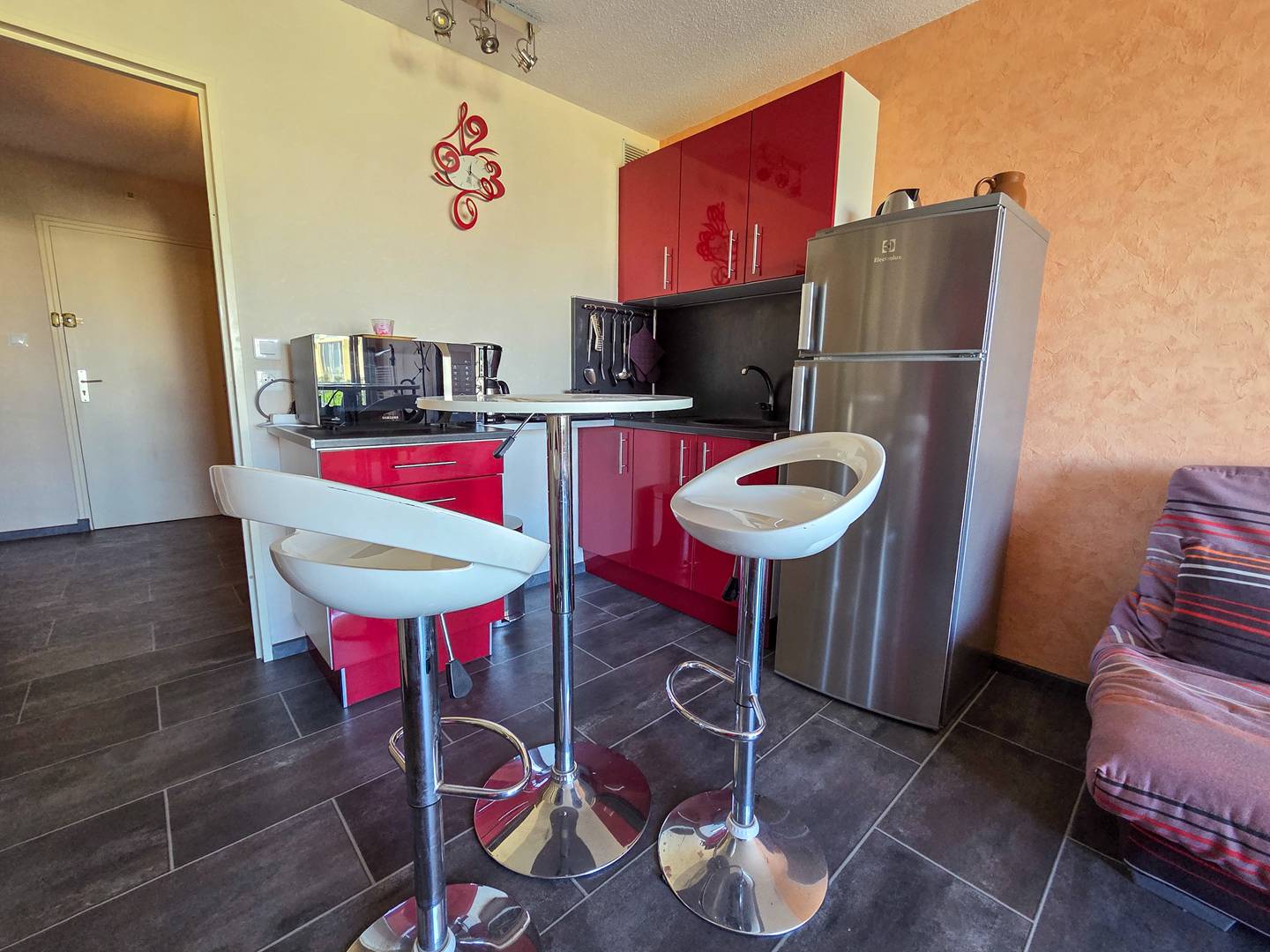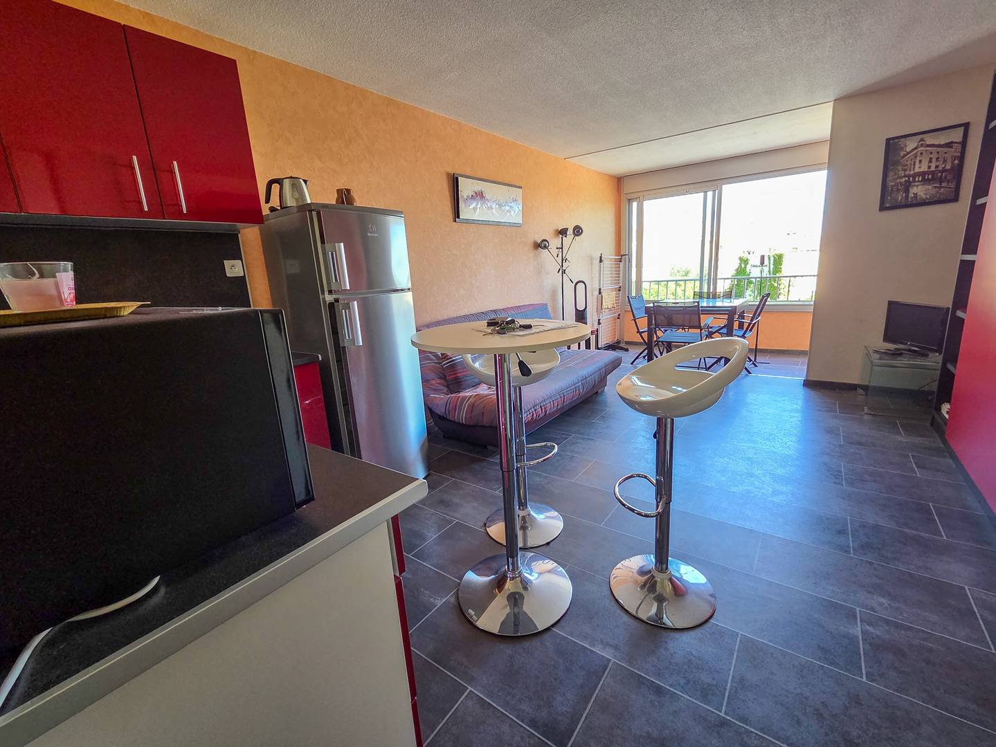 Cap d'Agde, Résidence sécurisée Les Indes Galantes avec place de parking et piscine à deux pas des commerces, de la plage du Môle et du Port de plaisance. Studio cabine au 1er étage pour 4 personnes, de 24.00 m2. Il est composé comme suit : - Cuisine : réfrigérateur avec compartiment congélateur, four combiné micro-ondes, cafetière, - Séjour : canapé convertible pour 2 personnes en 140, lit armoire en 140, télévision, mange debout et tabouret - Salle d'eau : Douche, lavabo, lave-linge, WC séparé - Cabine : 1 lit superposé en 80cm L'ouverture de la piscine est soumise à l'autorisation de la copropriété et est ouverte normalement de mi juin au début septembre. Une caution est exigée dun montant de 400 par carte bancaire (Visa ou Euromastercard). --- Les clients/occupants âgés de moins de 18 ans doivent être accompagnés d'un parent ou d'un tuteur légal pour pouvoir s'enregistrer. --- * Ce logement est destiné aux familles * *** Groupes sab